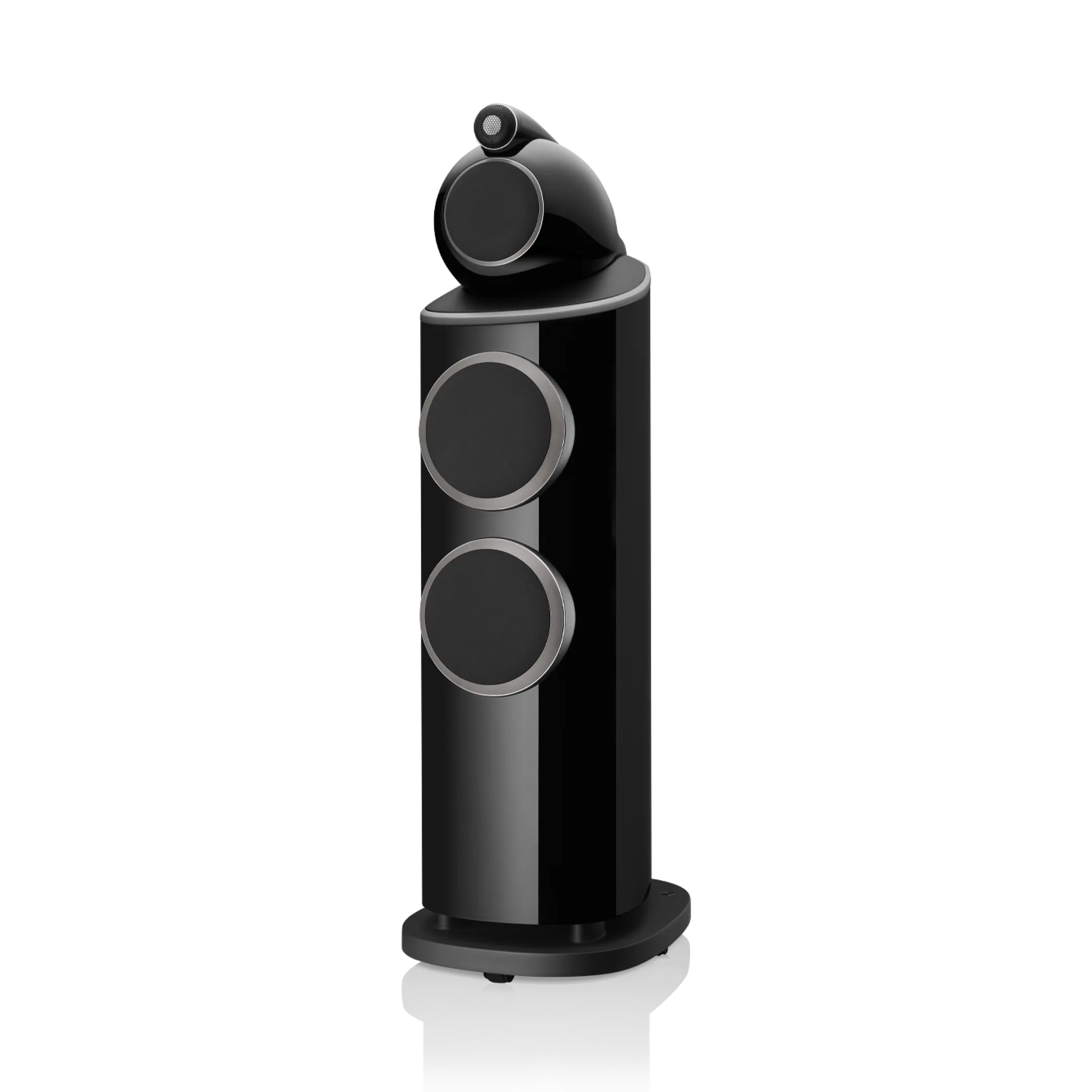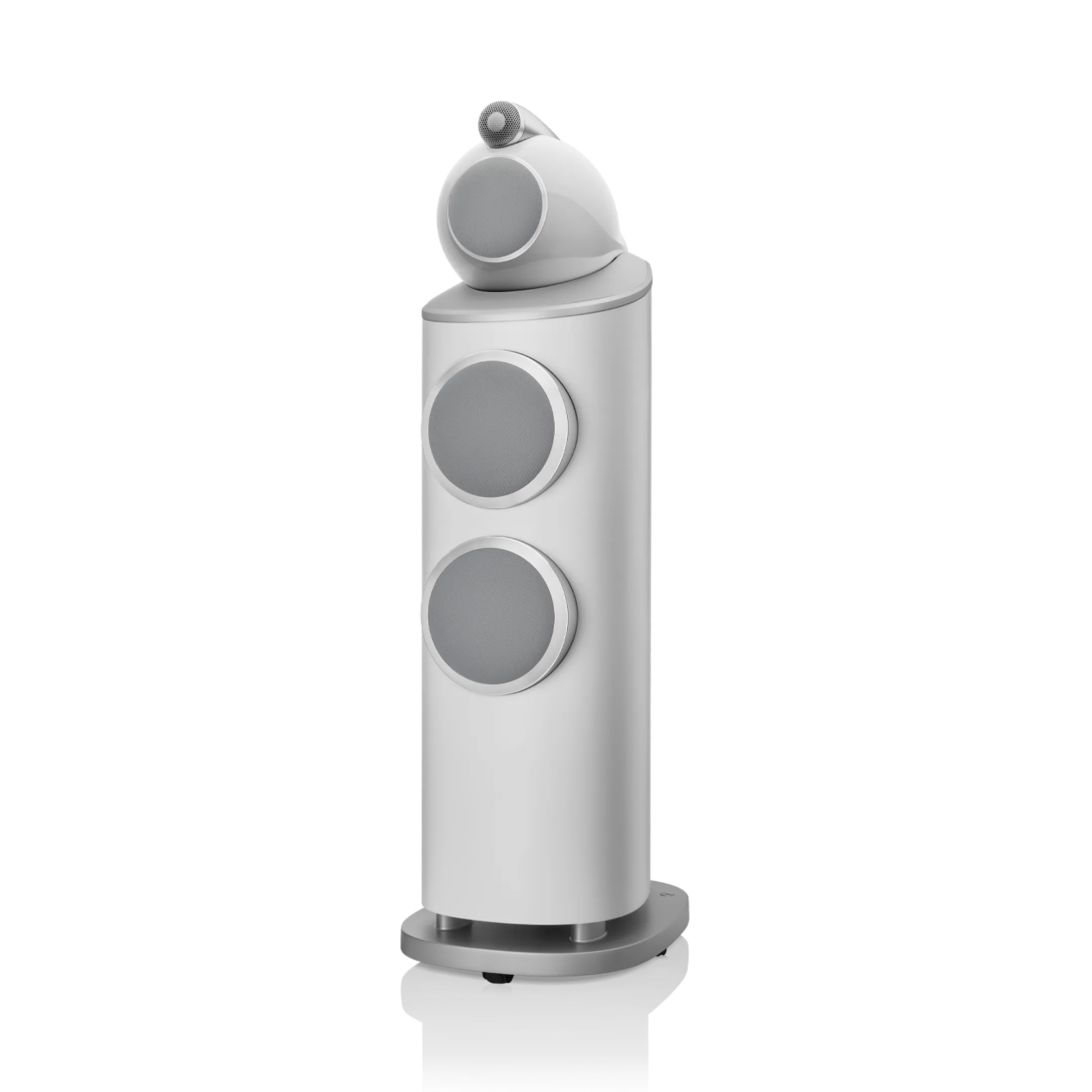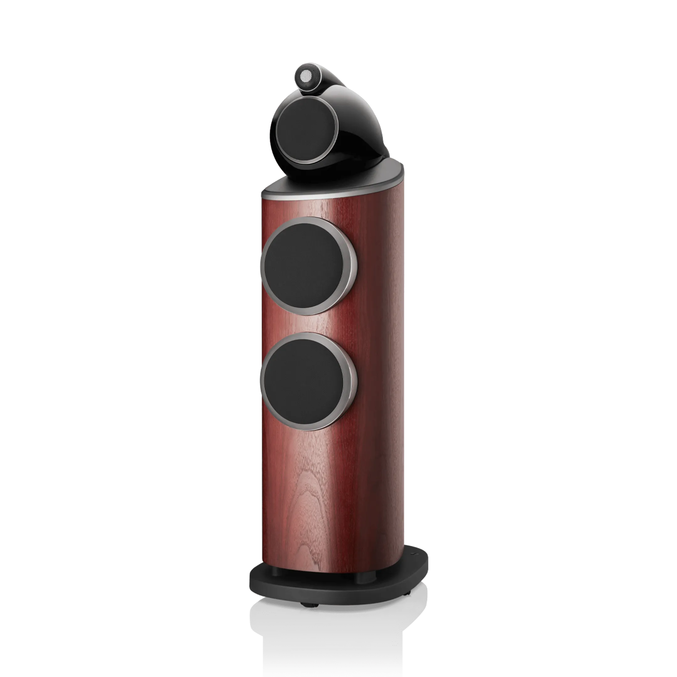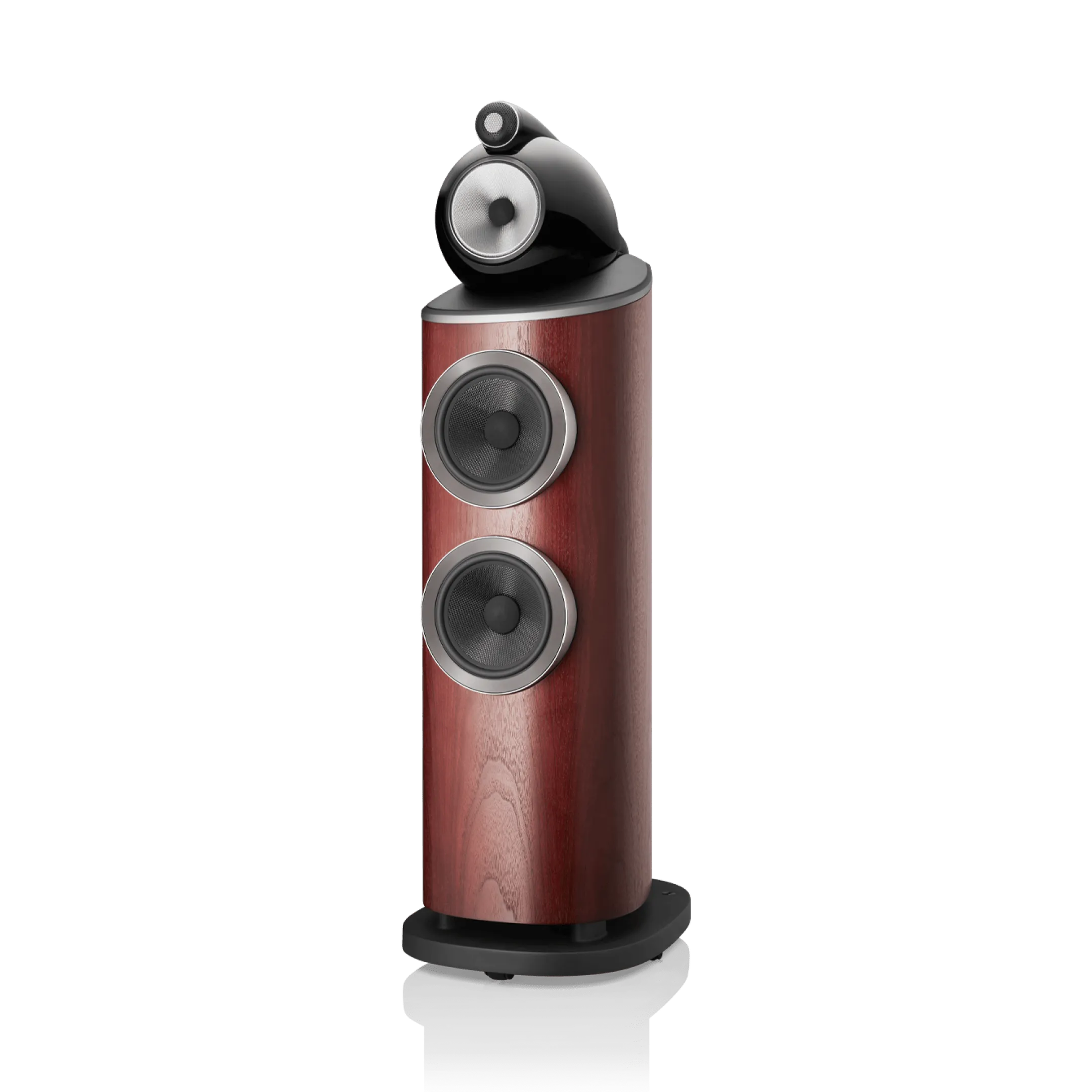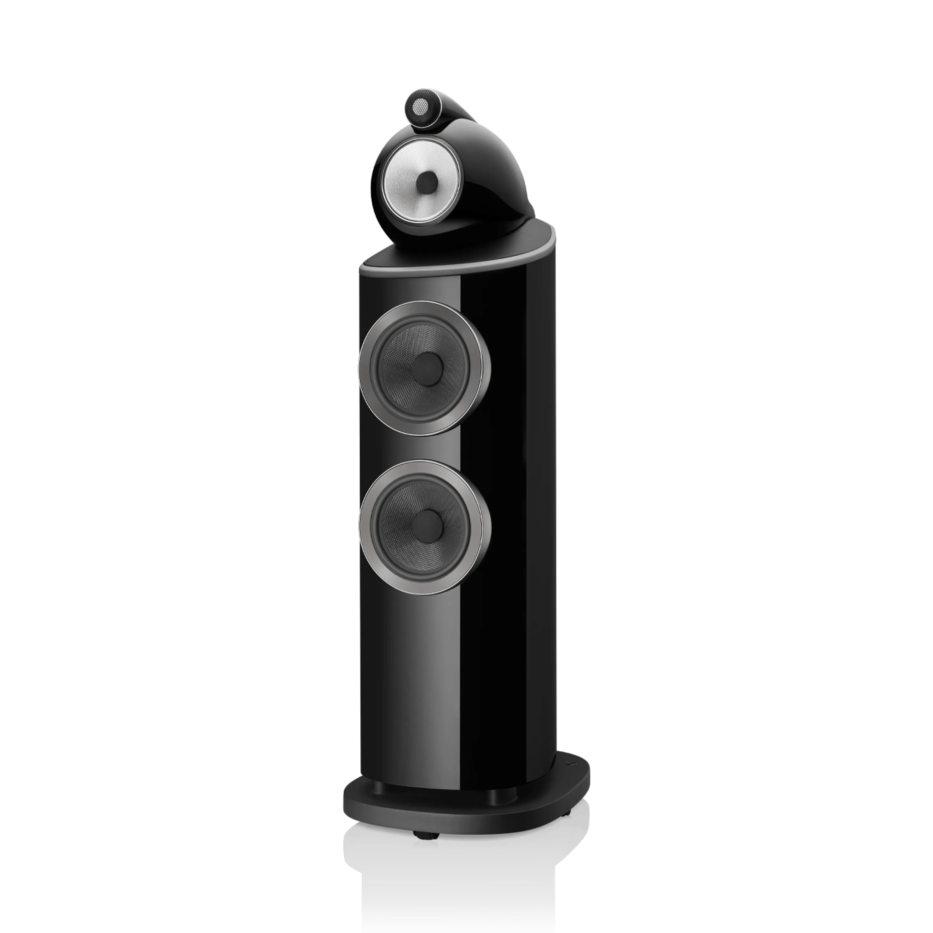 803 D4, iki adet Aerofoil™ bas konisini, her biri kavisli kabinin en sert kısmına sabitlenmiş bir alüminyum plakaya kenetlenen ikiz, yekpare alüminyum bas kapsüllerine monte eder. Tek parça metal olarak şekillendirilen bu sert yapılar, o güçlü bas konileri için mükemmel mekanik konumu sağlar.